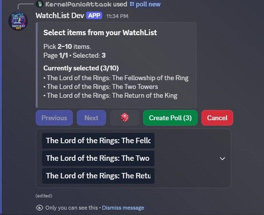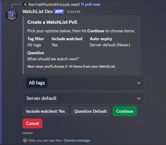 (True) Provides a random entry from the Watch List or from a specific tag if provided. EX. /List random_choice True