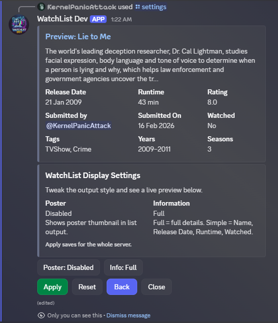 Determine the order the list is in when shown. Options: Submitted On (Default), Release Date, Rating, Runtime, Alphabetical