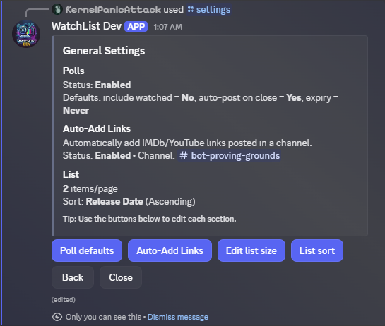 Contains settings for Polls, Auto-Add via URL, List Size, and List Sorting